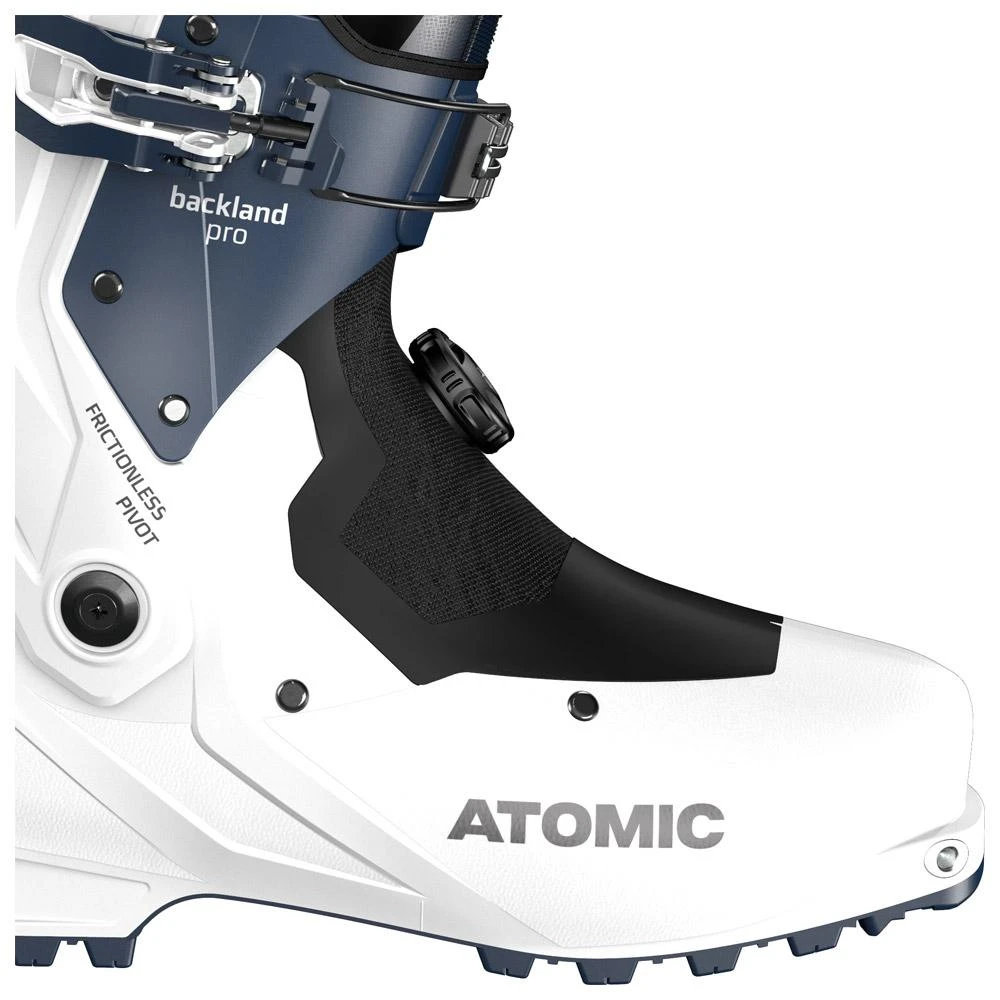 Las Atomic Backland Pro W cuentan con la construcción Prolite, que les permite pesar sólo 1.030 gramos (por bota en talla 24/24.5), pero ofrecer una excelente reactividad y control en el descenso. La puntera de 98 mm., el refuerzo Energy Backbone, el ajuste Boa y la correa de 40 mm. las convierten en unas buenas botas de descenso, a la vez que resultan impresionantes en las subidas gracias a los 74° de recorrido que ofrece el sistema Free/Lock 4.0 de esquí/marcha.
