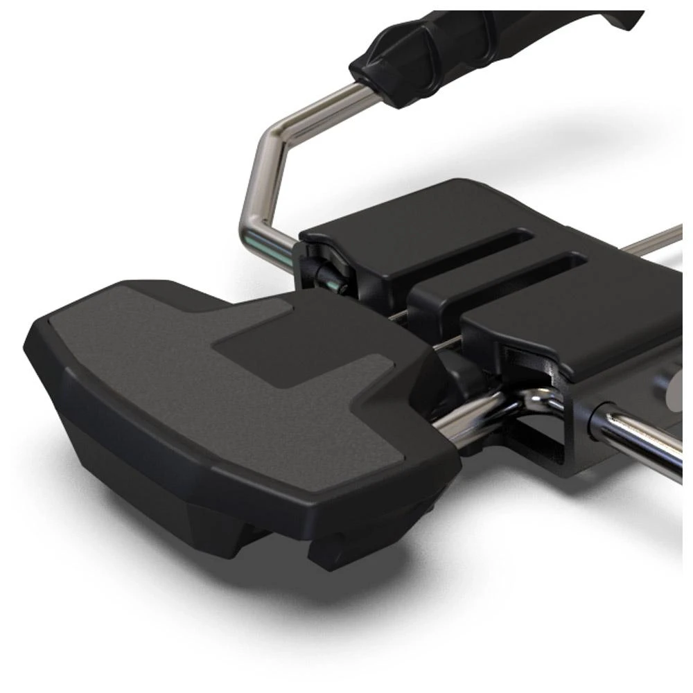 Estos frenos para fijaciones Low Tech Marker Alpinist son más cómodos de usar y más seguros que las correas. Esta versión tiene 105 mm de ancho. Se bloquean automáticamente en el modo de ascenso y se reactivan cuando se cambia al modo de descenso.