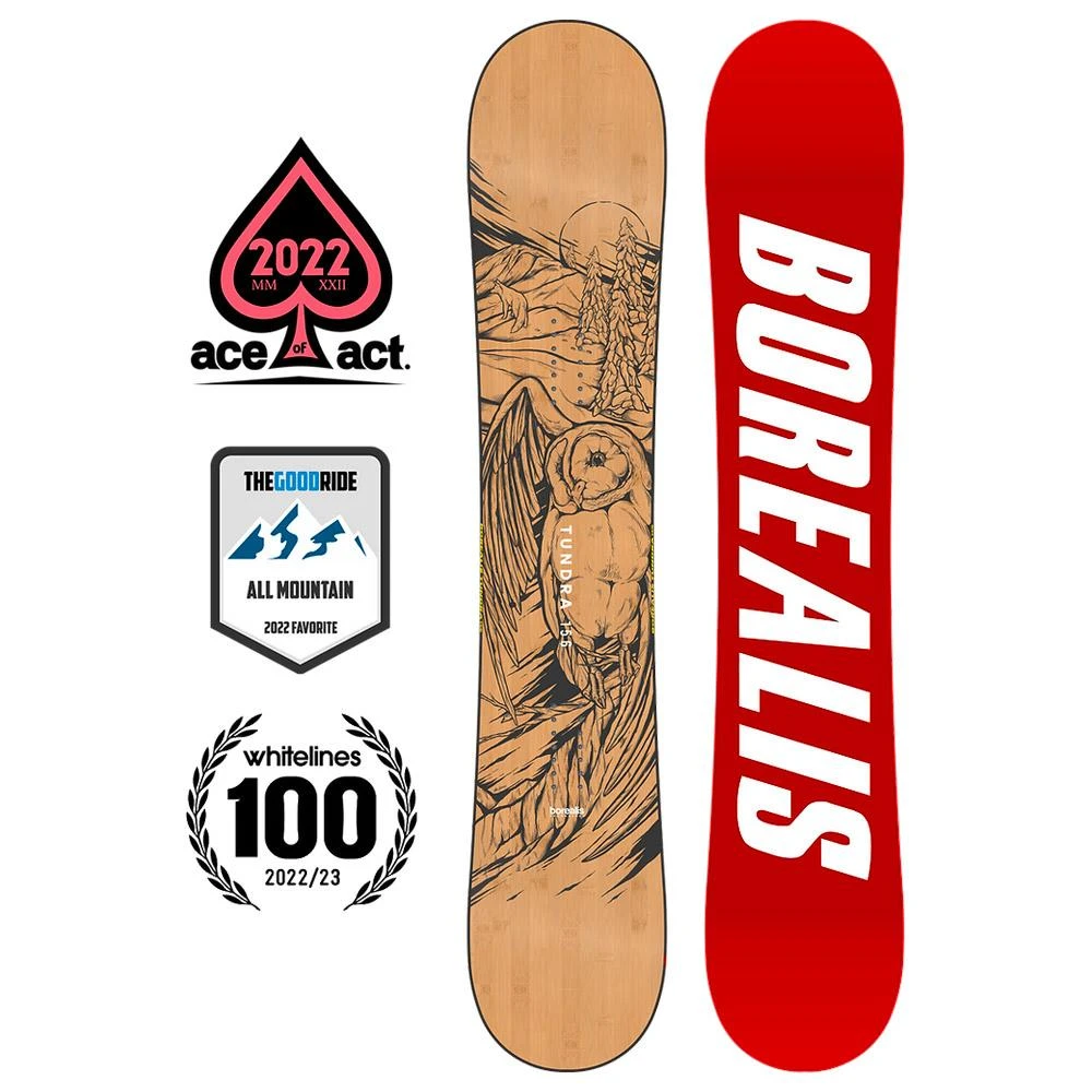 Muy parecida a la Artefact, la Borealis Tundra está un poco más orientada a las pistas/freestyle, mientras que la Artefact estará más orientada al freeride/la nieve polvo. Sin embargo, la Borealis Tundra también es una tabla de snowboard twin direccional muy versátil.