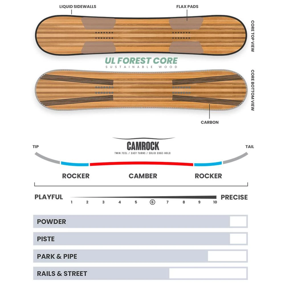 Un modelo destinado a snowboarders de nivel intermedio/avanzado que quieran hacer freestyle y shredder en el park, manteniendo la eficiencia en descenso en pistas y bordes de pistas.